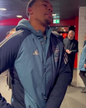 赛后枪手官推晒出的球员通道视角,多名球员激情庆祝,厄德高和拉亚怒吼,斯凯利向镜头摆出了“3”的手势,而本场为枪手先拔头筹的加布里埃尔更是开心地做出了“稳稳落袋”的庆祝动作。