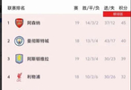阿森纳主场4-1维拉,目前先赛一场以5分优势领跑,维拉39分排名第三;