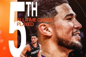 这是布克太阳生涯的第684场比赛,超越凯文·约翰逊独居队史第五位,排在他前面的是迪克·范-阿斯代尔。