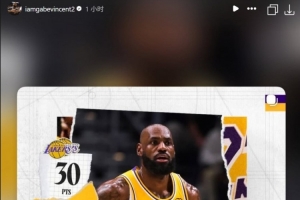 赛后,因伤缺席的文森特第一时间晒出了詹姆斯的数据海报,祝贺老詹打出一场精彩的比赛。