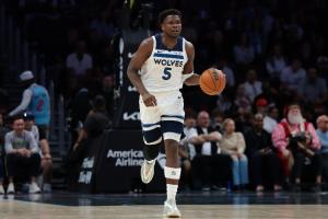 爱德华兹(24岁零157天)超越科比(24岁零194天)成为NBA史上第三年轻的万分先生,仅次于詹姆斯(23岁零59天)和杜兰特(24岁零33天)。