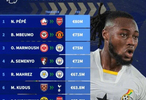 领头的正是科特迪瓦的尼古拉-佩佩,他在2019年从里尔以8000万欧元转会费加入阿森纳,但他从未能在英超展现潜力。四年后他实际上自由转会离开了枪手。