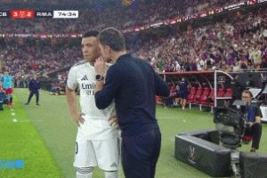 体育资讯01月12日讯 西超杯决赛巴萨vs皇马第76分钟,姆巴佩替补登场,皇马换下贡萨洛·加西亚。