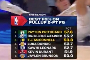 凯尔特人VS步行者,转播方给出两张普里查德的图记,图一: