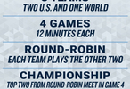 2支美国队和1支世界队(每队8名全明星)将参加组内循环赛,合计进行4场比赛,每场12分钟。组内循环赛的前2名队伍将进入决赛争夺冠军。今年的24位全明星,每个分区12名球星(5首发+7替补规则照常),但今年的全明星将不按位置区分进行选人。